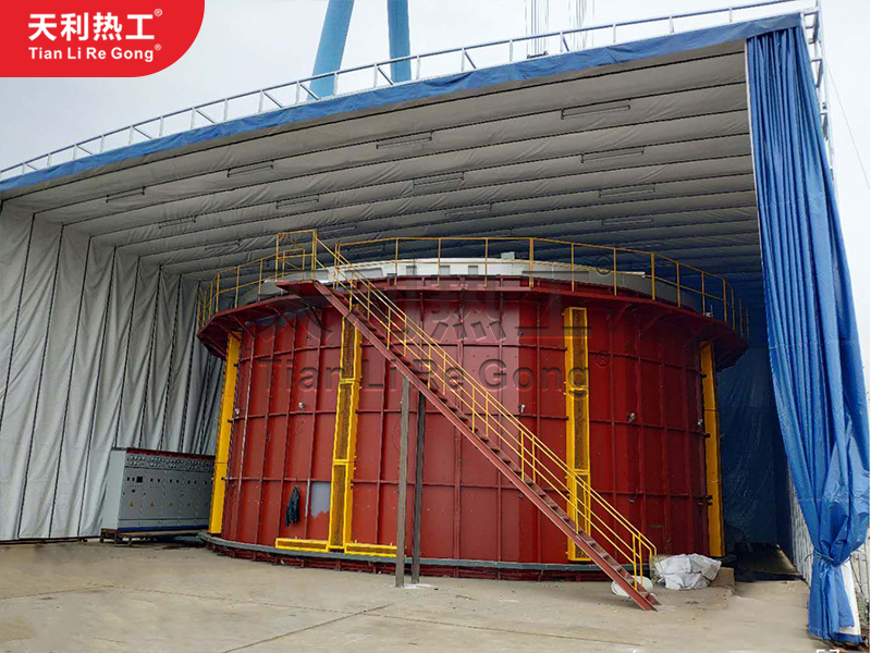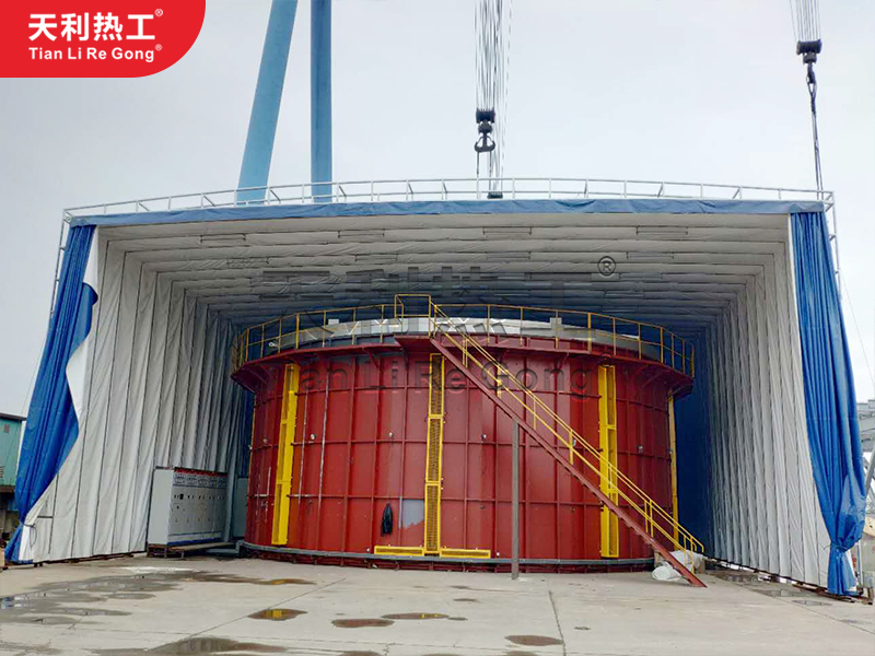 RJ3-2000-6井式退火爐采用分體化設計,將爐體均等分生產,每片兩邊焊有對接法蘭,采用高強度螺栓固定,并標注編號便于現場安裝及拆除工作,此種方法是我們大型設備成熟制作工藝。